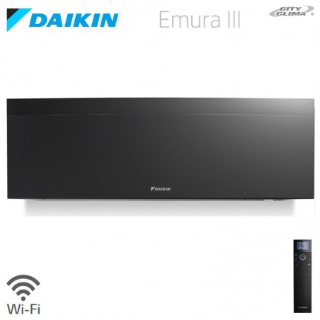 Unità interne Emura con pannello frontale e corpo nero con filtri Silver Allergen e apatite di titanio, sensore di presenza a due aree di azione, flusso d’aria 3D e scheda Wi-Fi online controller BRP069B41 inclusa nella confezione dell’unità interna.
