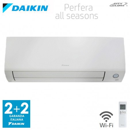 Unità interne D interne Daikin Perfera All Seasons con pannello frontale bianco, flash streamer, sensore di presenza a due aree di azione, flusso d’aria 3D e Wi-Fi integrato nell’unità interna.