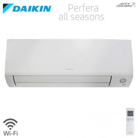 Unità interne D interne Daikin Perfera All Seasons con pannello frontale bianco, flash streamer, sensore di presenza a due aree di azione, flusso d’aria 3D e Wi-Fi integrato nell’unità interna.